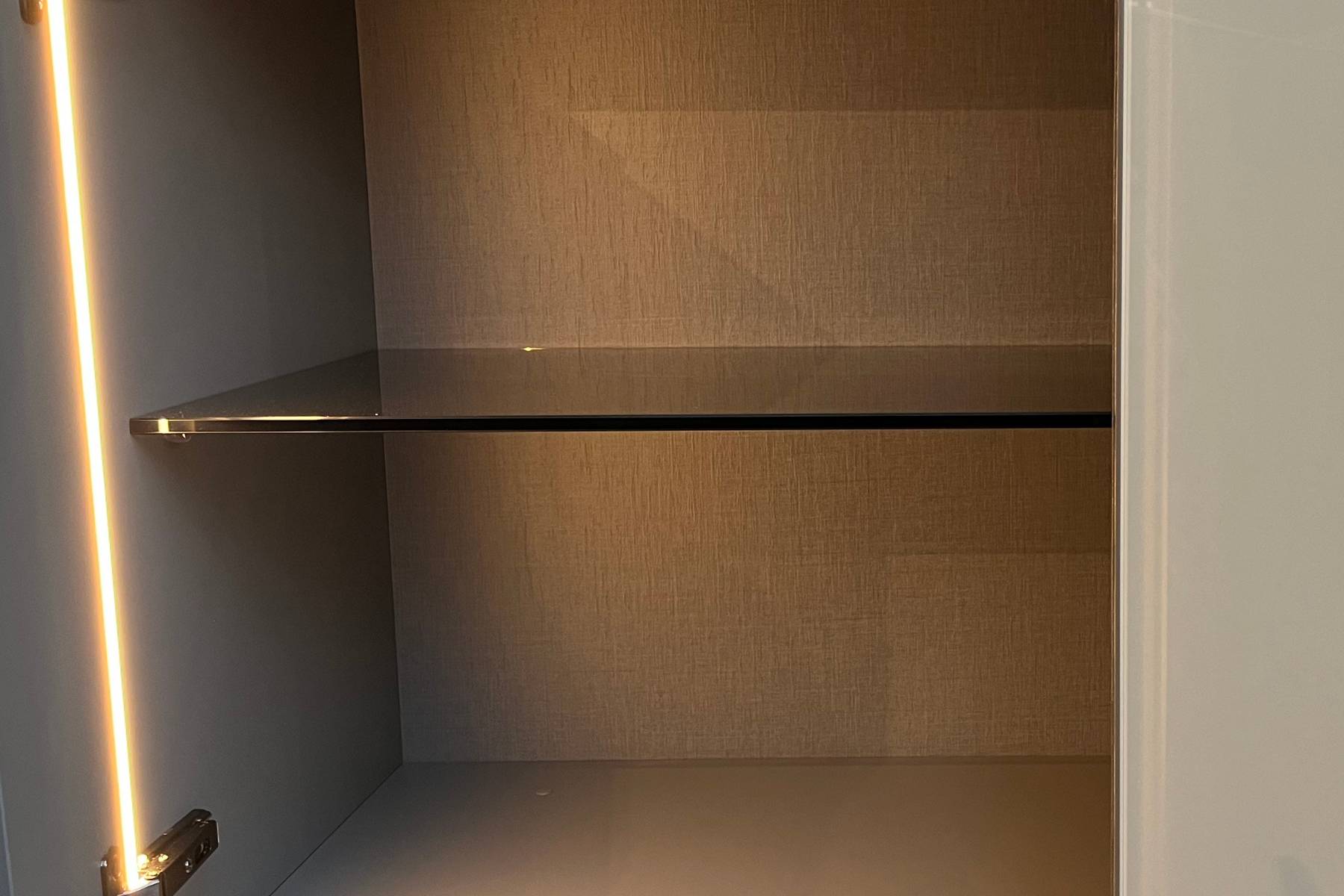Colore in foto: vetrine in vetro fumè Bronzo e frontali nei colori (Juta, Spago, Bianco, Mandorla e Cocco)