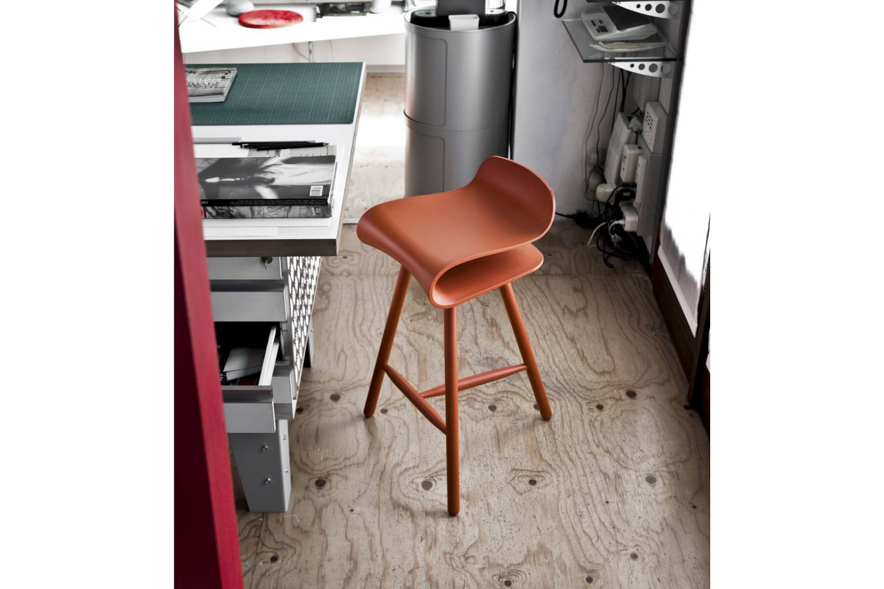 Il modello in foto è lo sgabello su base in legno. Disponibili anche: sgabello basso o normale su telaio a slitta e sgabello con regolazione in altezza.