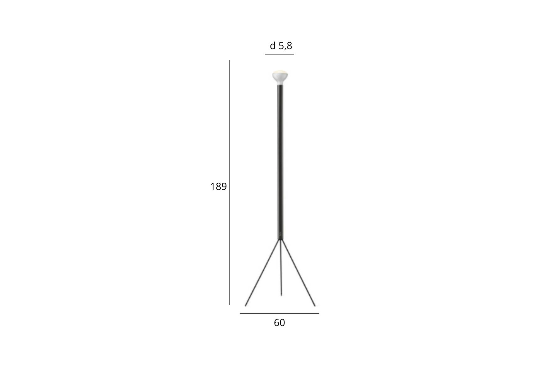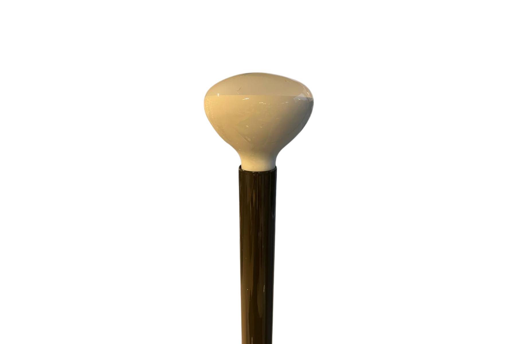 Luminator di Flos Γ¨ una lampada da terra che diffonde luce in modo indiretto, con lampadina dotata di riflettore. La struttura include un fusto di ferro verniciato a liquido e gambe in metallo zincato anch’esse verniciate a liquido.