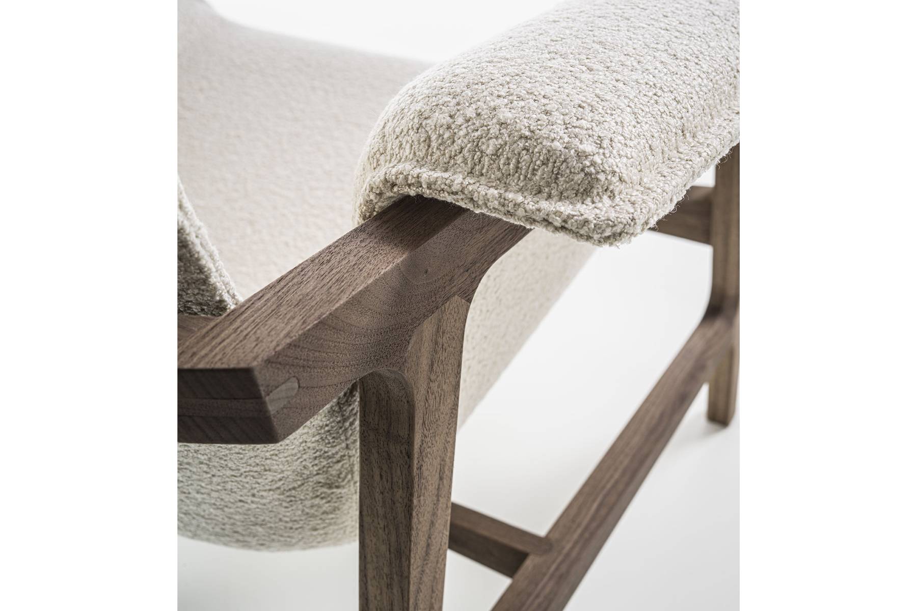 Arianna di Frigerio รจ una poltrona con una base inย legno massiccio e un rivestimento in pelle o tessuto. รˆ un prodotto che mette in risalto la maestria sartoriale dell’azienda tramite dettagli di cuciture raffinate, che si fondono elegantemente con il materiale.