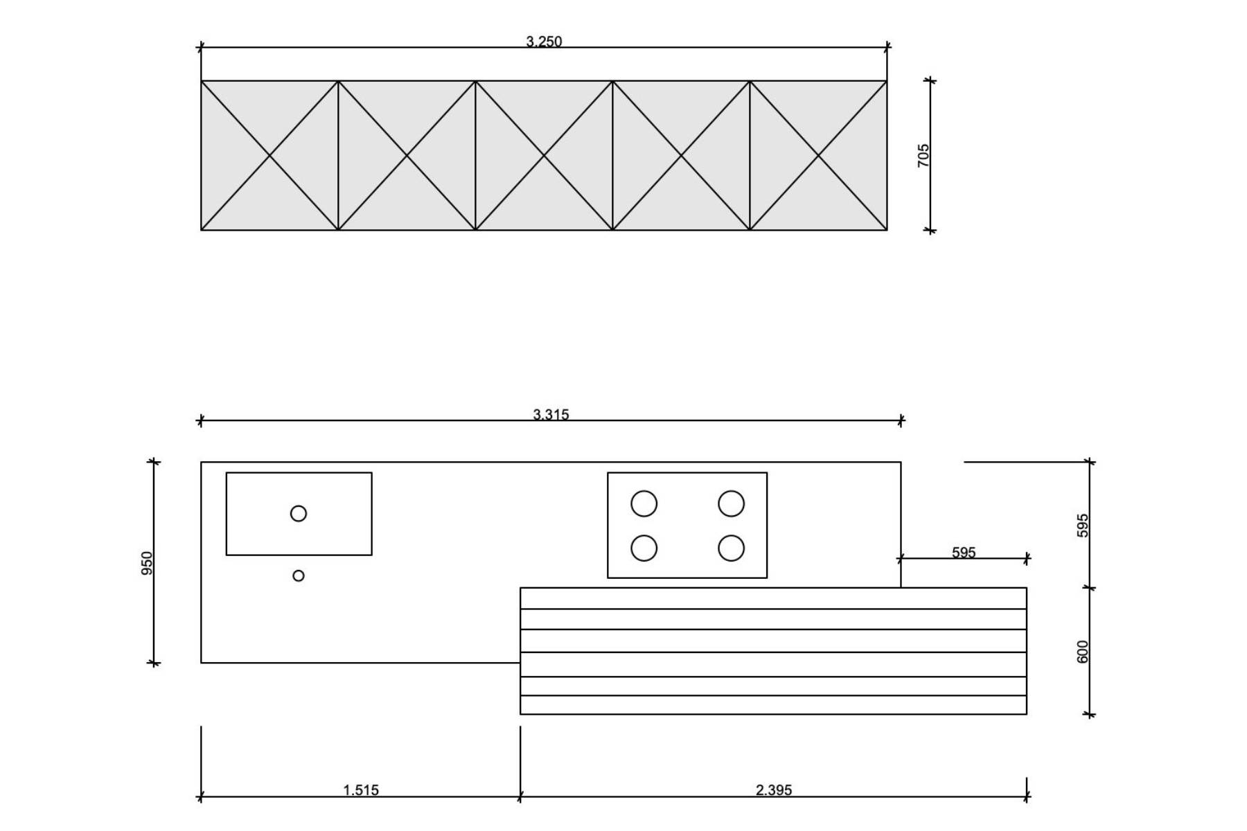 Basi e piano di lavoro in Kerlite Fossil Nero. Colonne in alluminio Grafite.