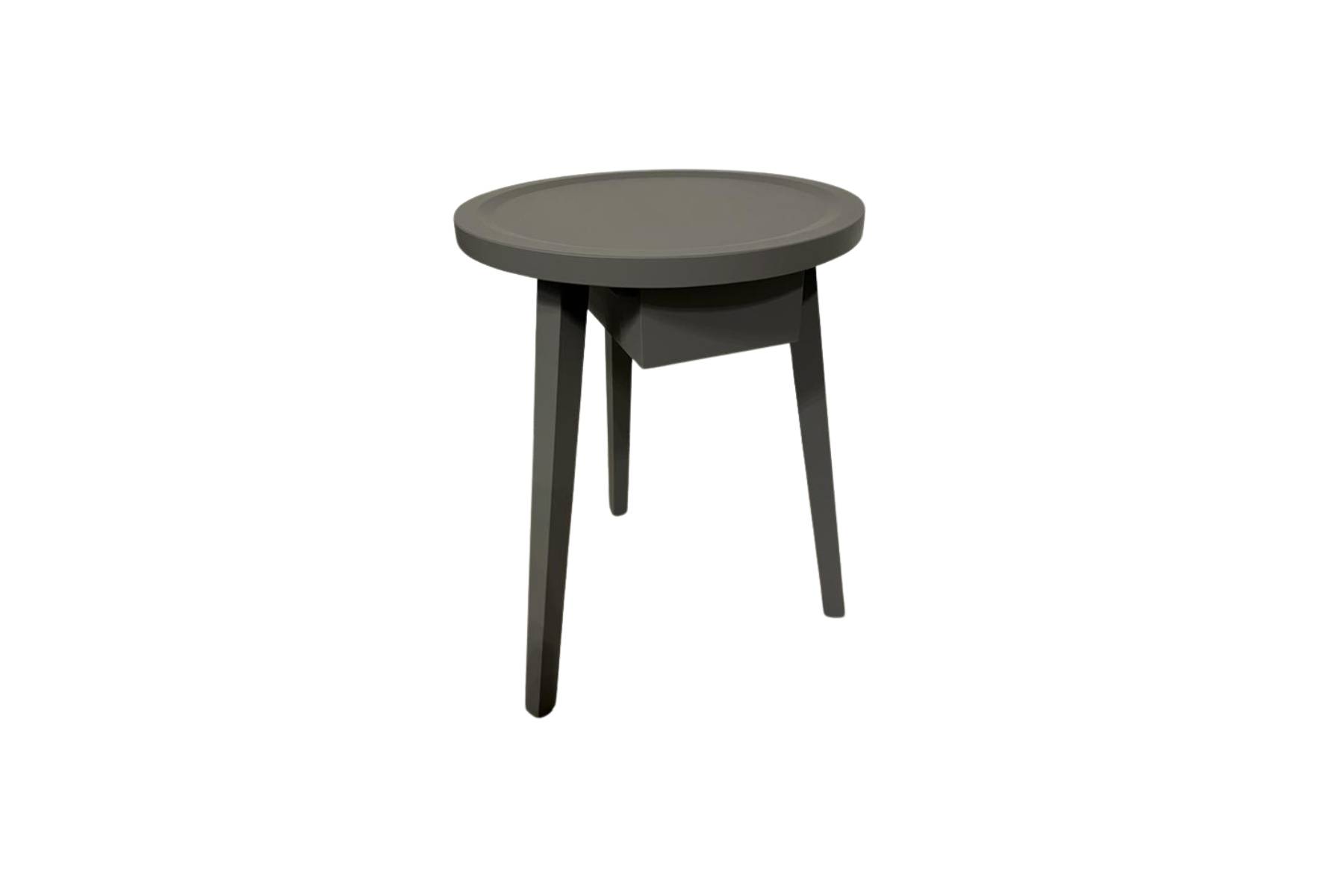 Gray 45 di Gervasoni Γ¨ un tavolinoΒ con un piano rotondo e una struttura a tre gambe. Il 45 presenta un cassetto integrato sotto il piano. Una caratteristica distintiva Γ¨ il bordo del piano, leggermente rialzato sia visivamente che al tatto, creando un effetto simile a un vassoio.