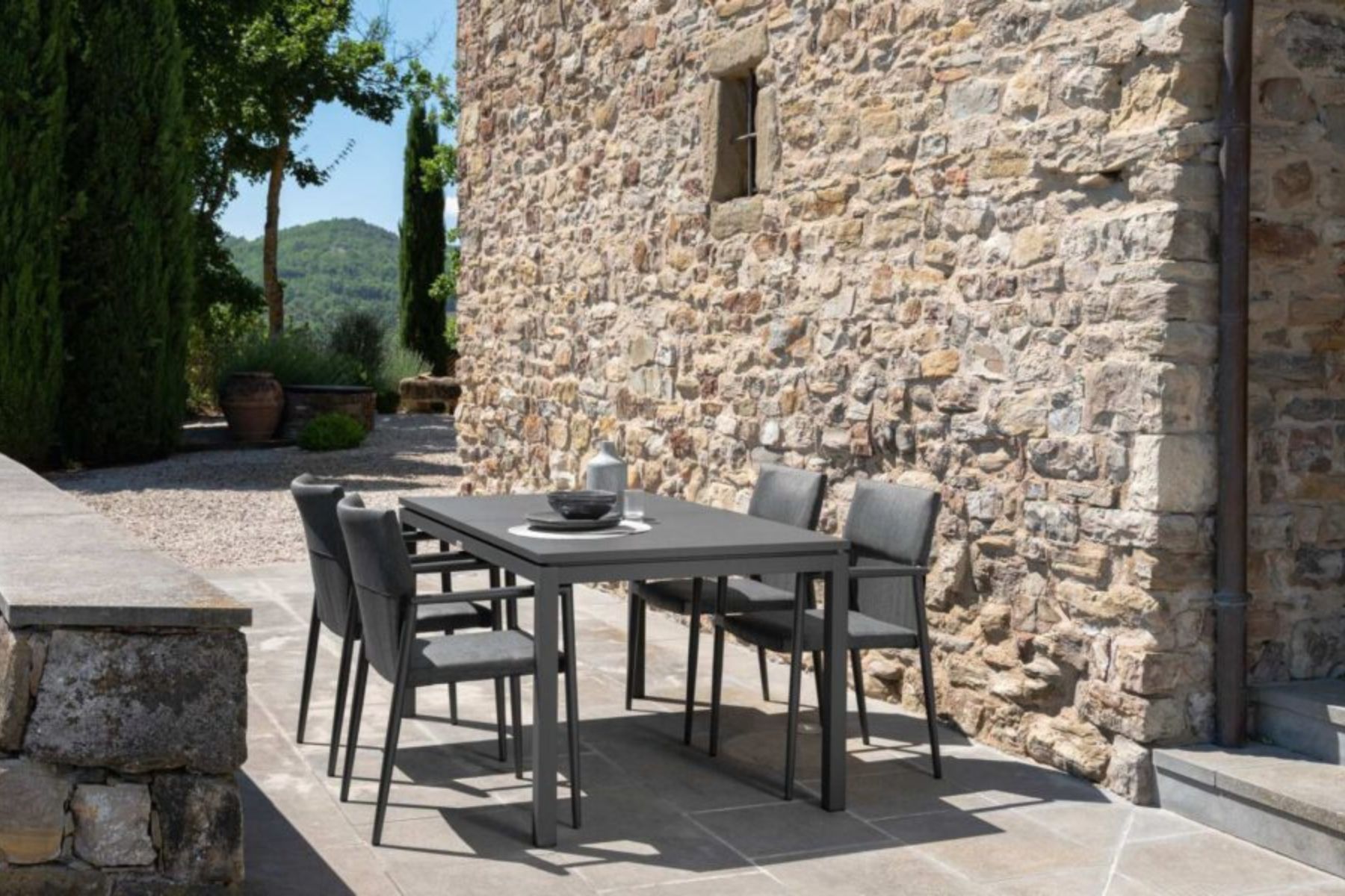 Colore in foto: struttura in alluminio Grafite e rivestimento in tessuto Sensitive textilene nel colore Dark Grey