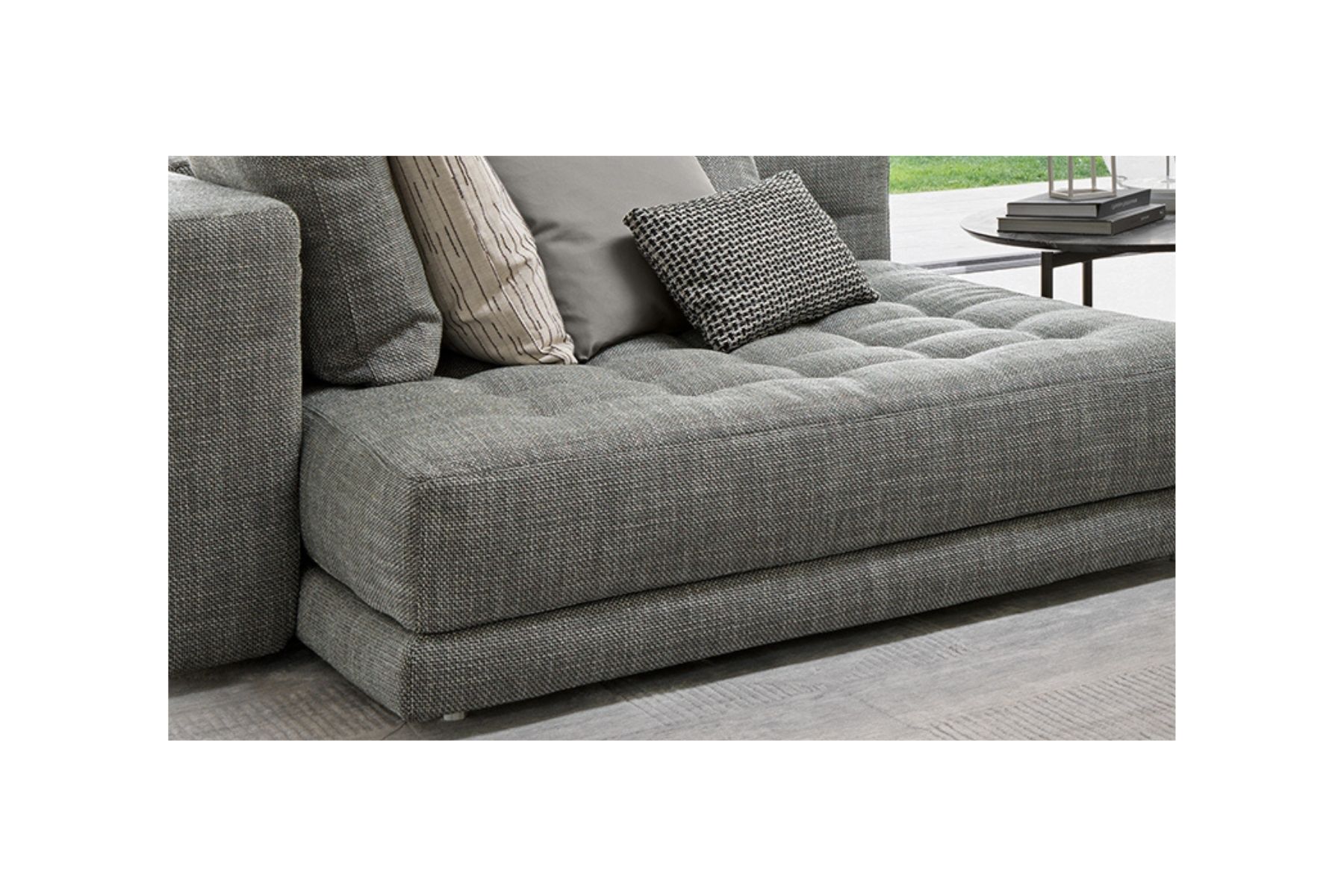 Doze Flat di Flou Γ¨ un divano componibile che garantisce un elevato comfort, paragonabile a quello di un letto, grazie alla base a doghe, allβimbottitura con molle e al tessuto traspirante sottostante. I moduli combinabili permettono configurazioni lineari, angolari o con allunghi laterali, adattandosi a spazi di diverse dimensioni. La versione Flat si distingue per un ingombro ridotto, ottenuto diminuendo lo spessore dei braccioli.