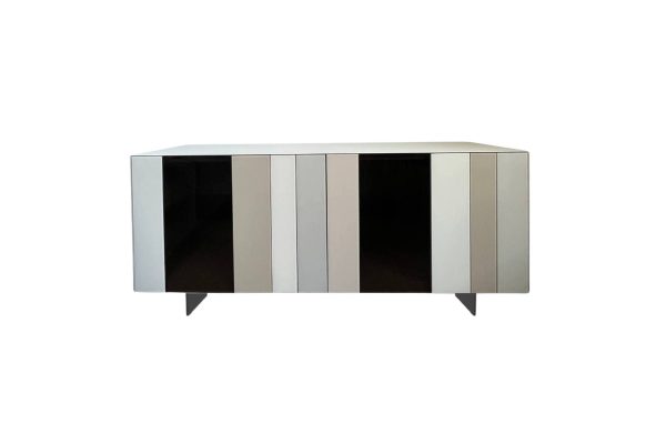Madia Now di Lago รจ un elementoย che unisce raffinatezza e funzionalitร con strisce in vetro in varie finiture, abbinabili ad ante in vetro bronzato. Il sistema di apertura brevettato consente di accedere ai vani con una semplice pressione.