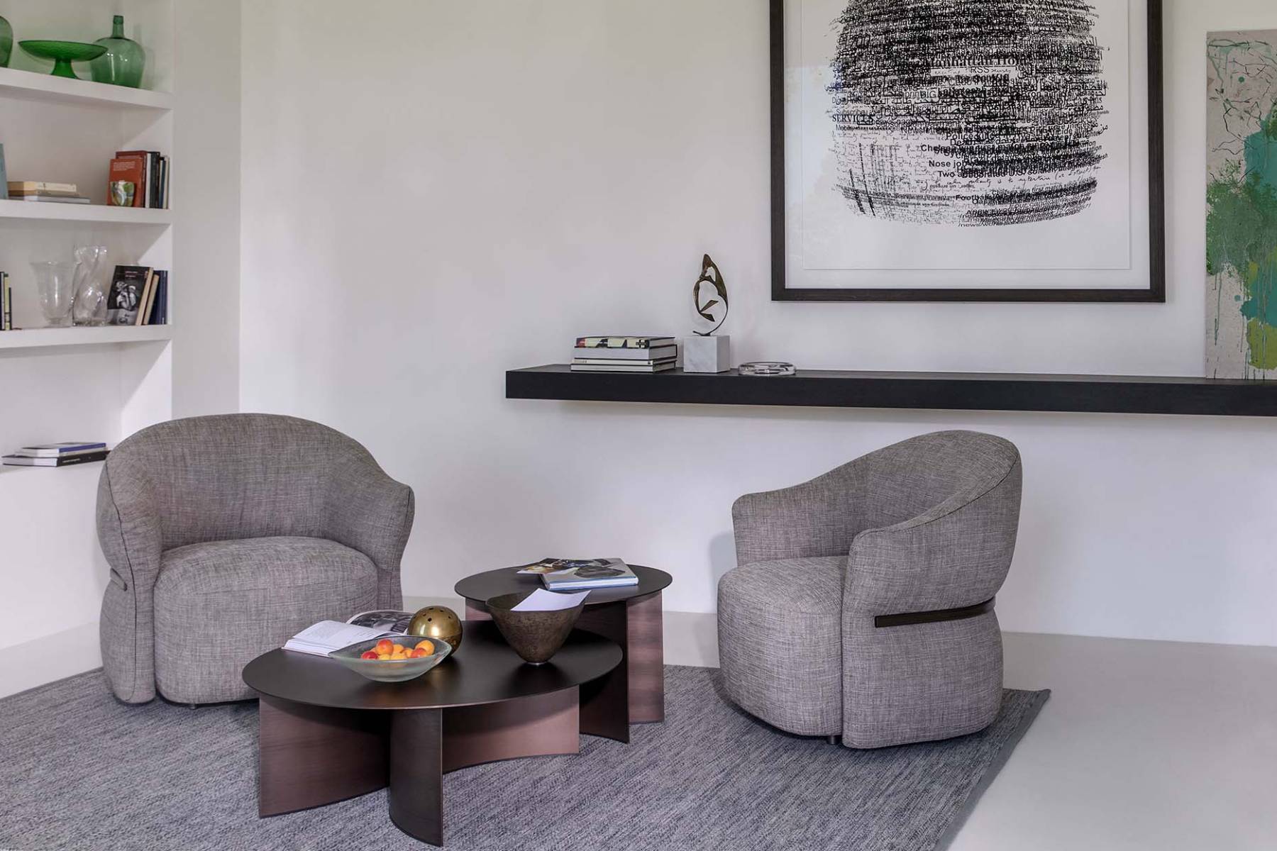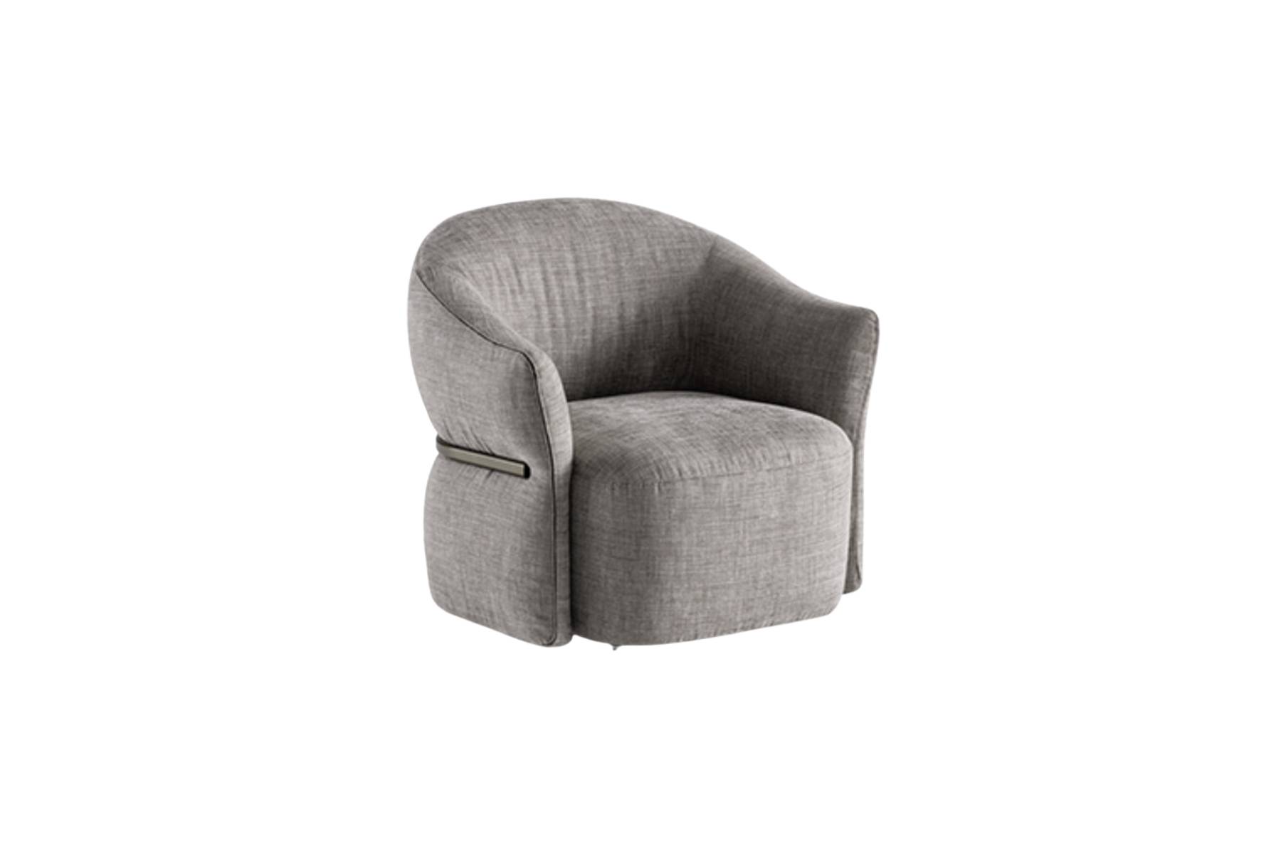 Madame Butterfly di Flou Γ¨ una poltrona girevole dal design arrotondato e avvolgente unisce senza interruzioni seduta, braccioli e schienale, offrendo comfort e protezione. Il tubolare in bronzo anodizzato Γ¨ un dettaglio elegante che contorna schienale e braccioli. I rivestimenti, disponibili in tessuto o pelle, sono completamente sfoderabili.